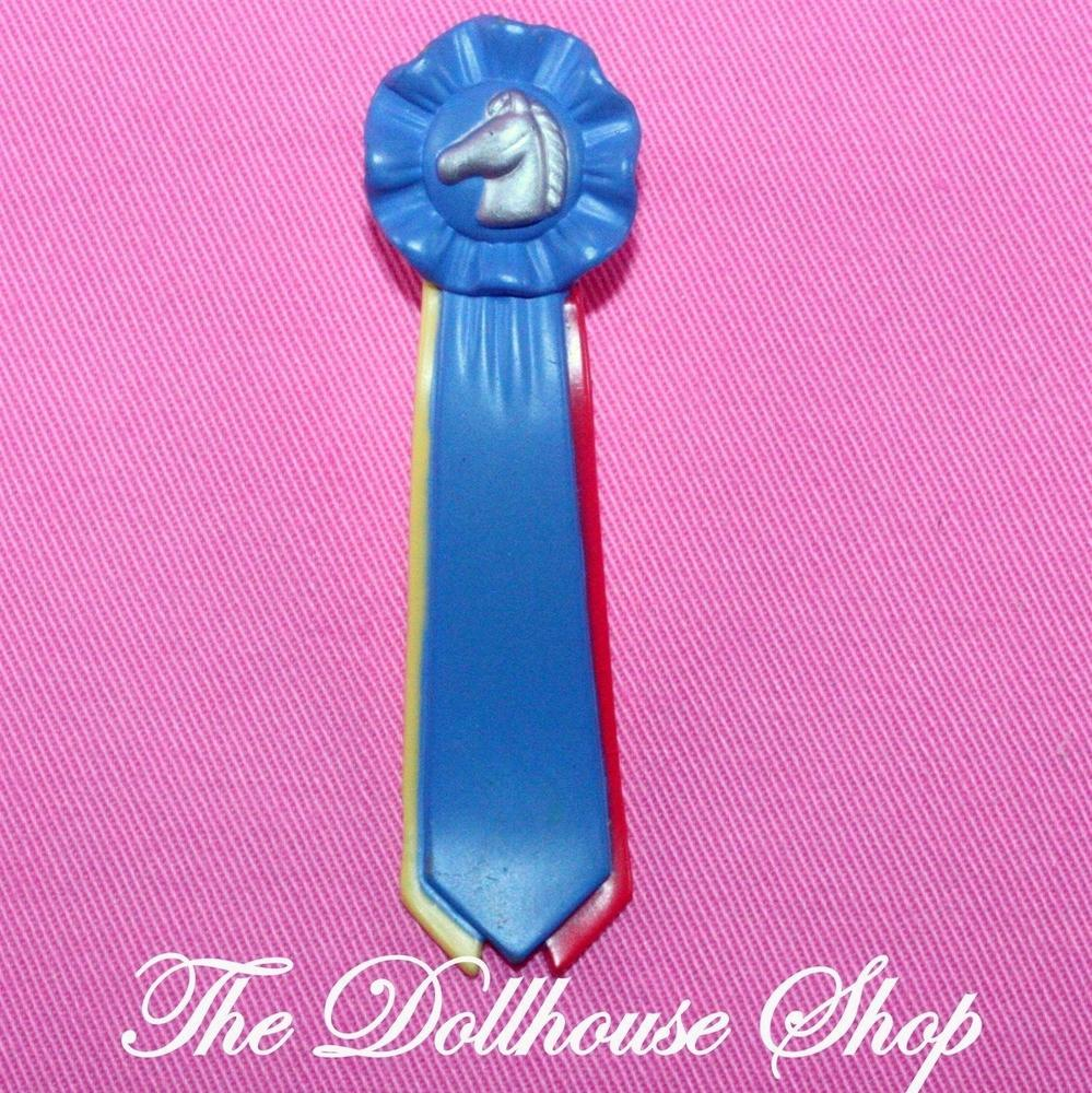 Fisher Price Loving Family Dollhouse blue horse / pony ribbon with silver horse head for your stable.(stable sold separately)
